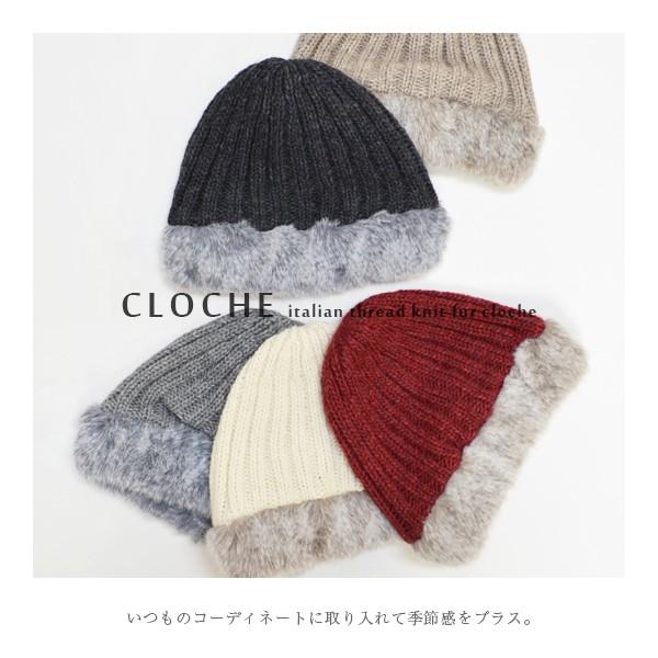 上質 イタリア糸 クロッシェ ニット帽 ニット レディース イタリア リブ編み クロシェ ビーニー 女性 防寒 秋冬 ファー もこもこ ふんわり