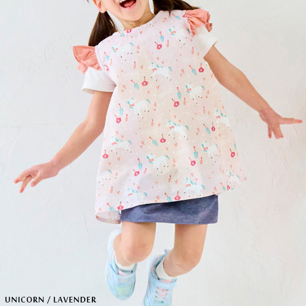キッズに人気のユニコーンモチーフを全面に配したエプロンは