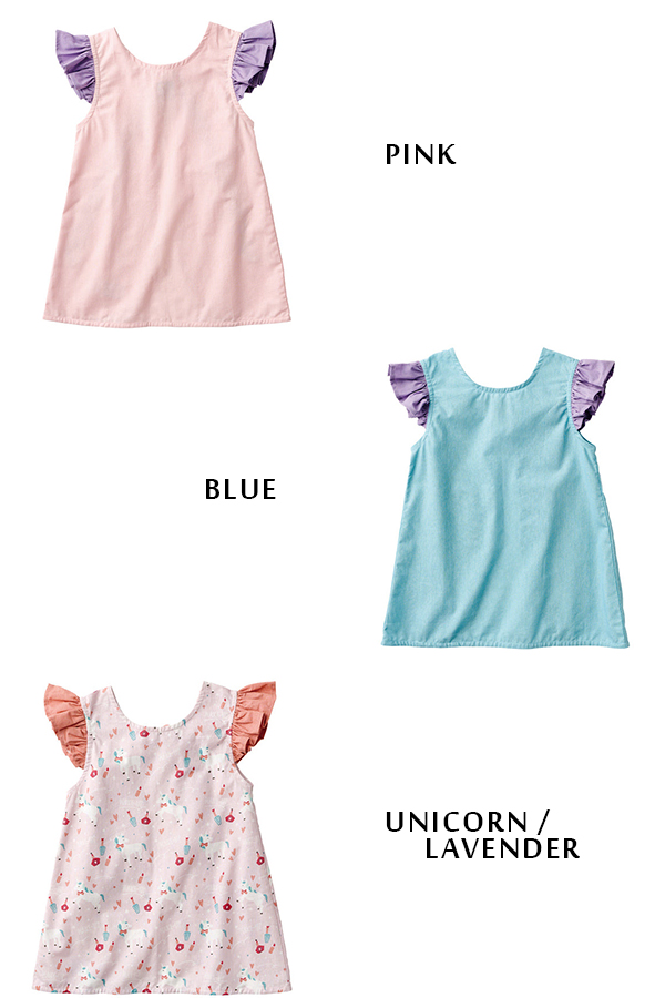 フリル エプロン キッズ 子供用 女の子 大きいリボン ユニコーン かわいい 綿100% コットン おしゃれ キッズエプロン かぶりエプロン KIDS お手伝いチュニック