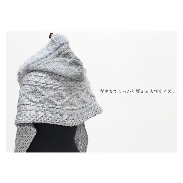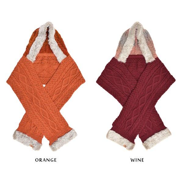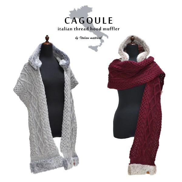 イタリア糸 カグール フードマフラー イタリア ケーブルニット ケーブル編み バイカラー ニットマフラー ストール 防寒 秋冬 羽織り カジュアル