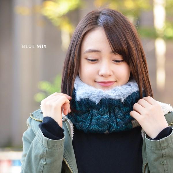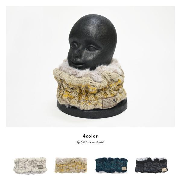 イタリア糸 ショート スヌード ファー ミックス ケーブルニット ニットスヌード ネックウォーマー マフラー ストール ふわふわ もこもこ 防寒 ラベル付き