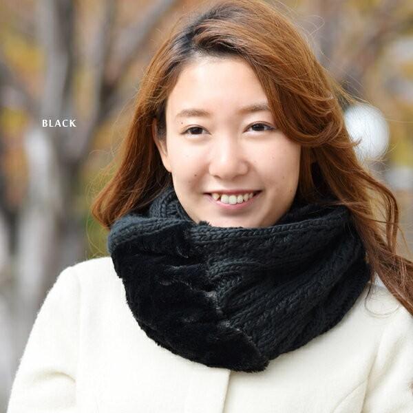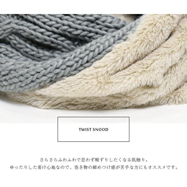 スヌード ツイスト ケーブル編 ニット ファー フェイクファー ボリューム ふわふわ もこもこ さらさら レディース ふんわり 上品 ベーシック 秋冬 防寒