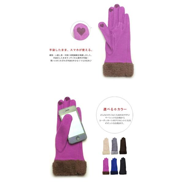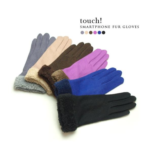 スマートフォン タブレット iPhone スマホ手袋 グローブ フェイクファー タッチパネル対応 刺繍 シンプル レディース 女性 防寒