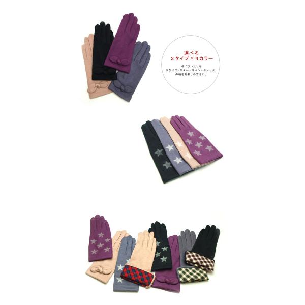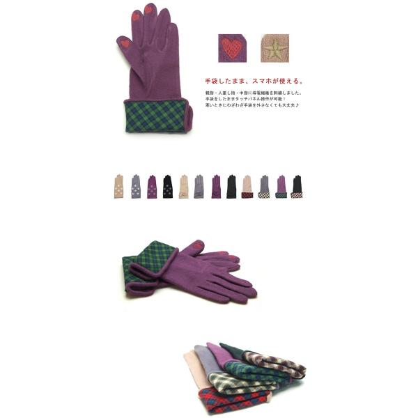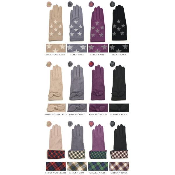 スマートフォン タブレット iPhone スマホ手袋 グローブ タッチパネル対応 刺繍 レディース 女性 防寒 スター 星 リボン チェック