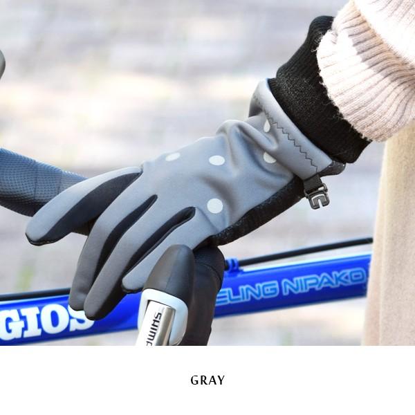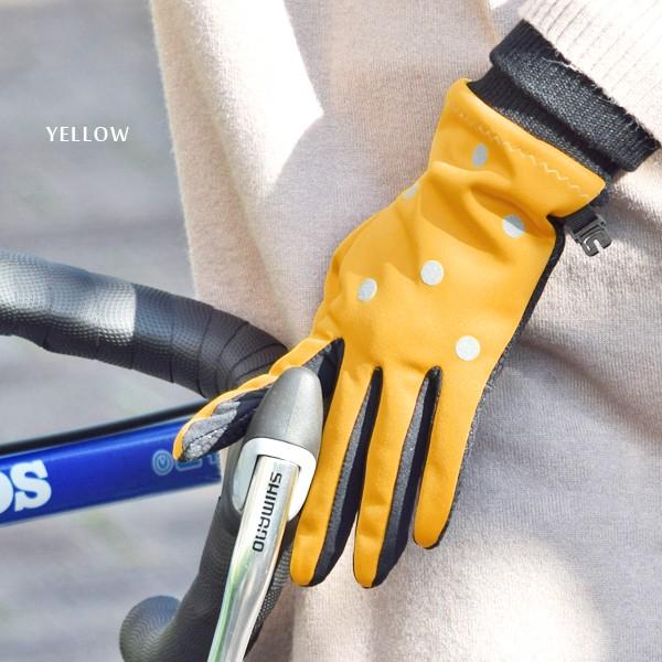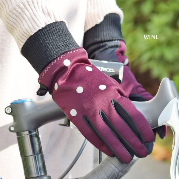 手袋 自転車 防風 ドット 水玉 丸 手ぶくろ グローブ レディース 女性 反射材 滑り止め リブ編み 裏起毛 ボア 防寒 保温 暖かい 通勤 通学 サイクリング