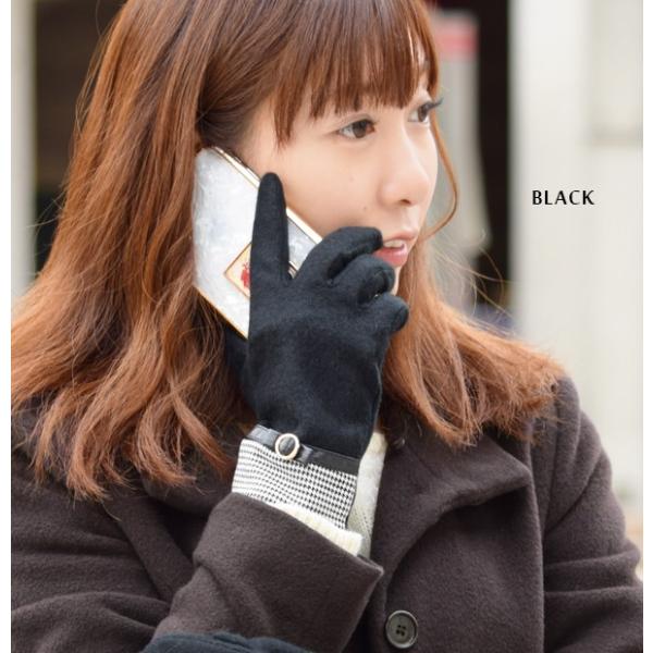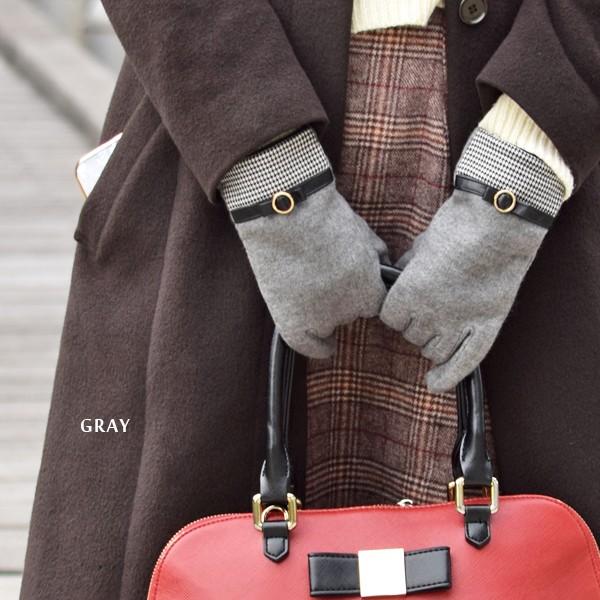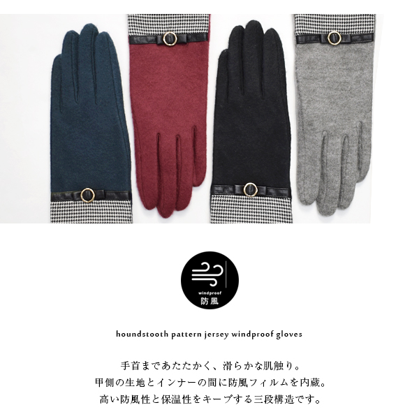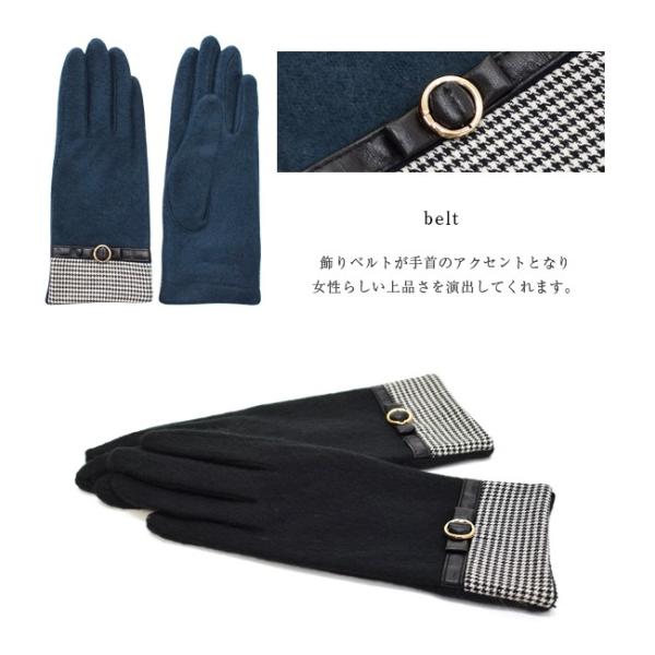 手袋 防風 千鳥 ベルト 飾りベルト 手ぶくろ グローブ 自転車 レディース 女性 ジャージ 裏起毛 防寒 保温 暖かい 通勤 通学 上品 オシャレ かわいい 秋冬