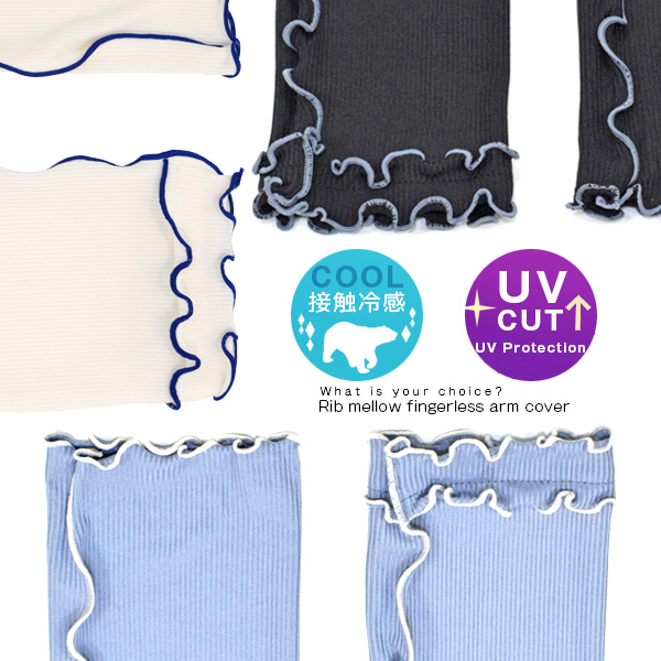 リブ&メロウ ロング丈 UVカット&接触冷感 アームカバー UPF50+