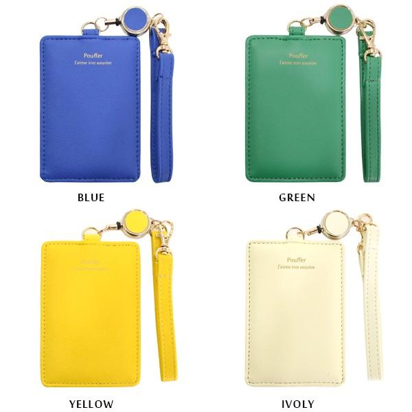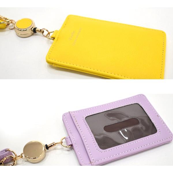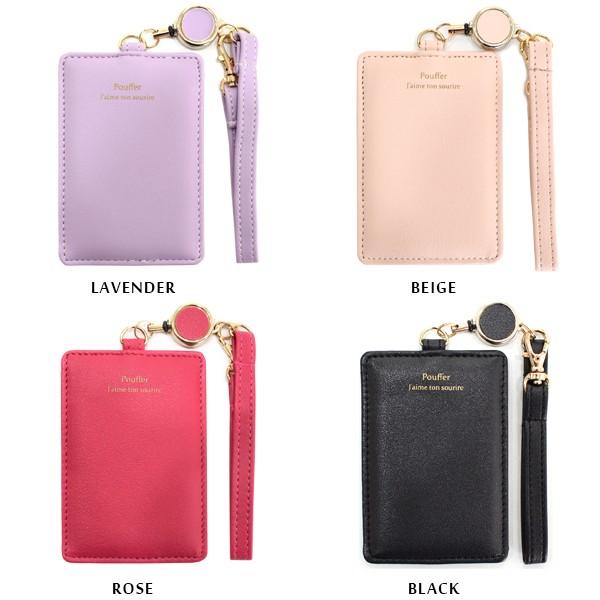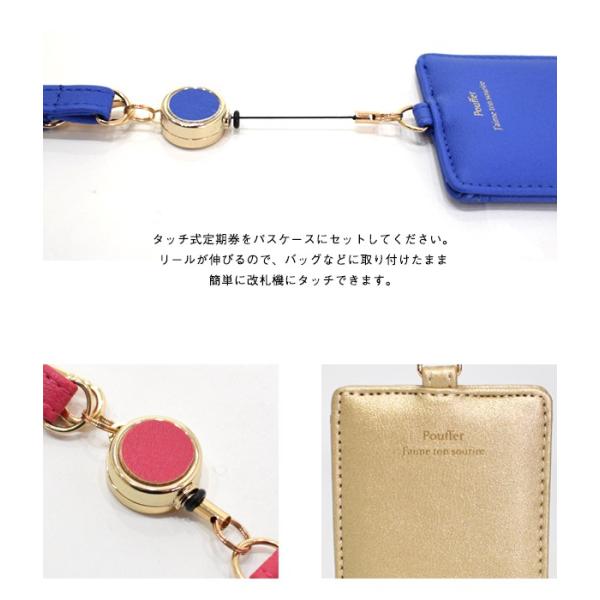 パスケース リール 無地 定期入れ ICカード カード ケース 通勤 通学 磁気定期 前面ポケット かわいい シンプル ベーシック カジュアル リール付き 定番