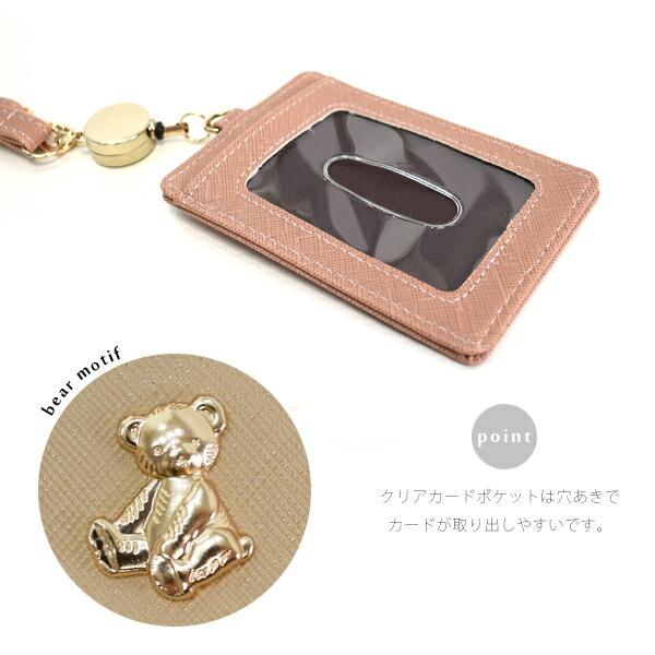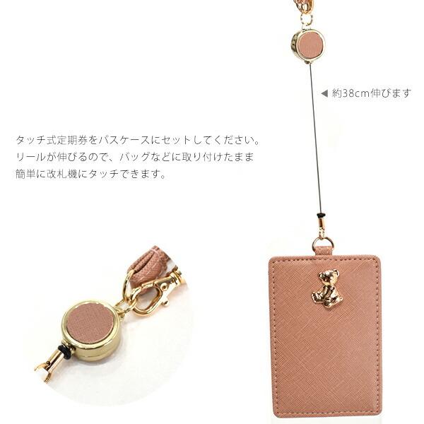 パスケース リール クマ 熊 ベアー 定期入れ ICカード チャーム プレート ストラップ アニマル カード ケース 通勤 通学 かわいい おしゃれ 上品