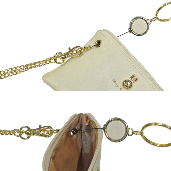 ラビットパスケース キーケース うさぎ ICカード 定期入れ 小物入れ コインケース ミニポーチ ファスナー 鍵 カギ リール キーリング チャーム シンプル
