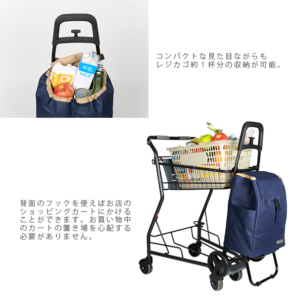 コンパクトな見た目ながらもレジかご約1杯分の収納が可能。