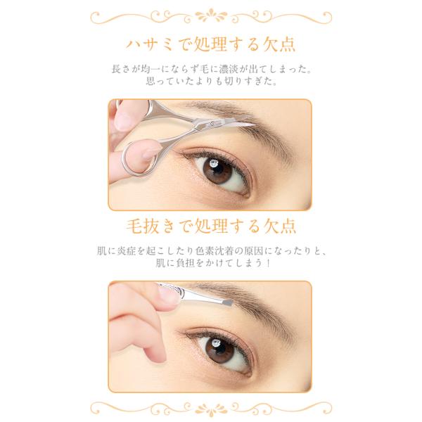 【刃が直接肌に触れないから安全!】ミニ回転刃を採用。直接刃先が肌に触れにくい構造で、初心者でも安心して使用できます。毛の長さを均一に切り揃えるには不向きですが、眉毛の形をきれいに整えたい方や、眉下のうぶ毛を処理したい方におすすめです。