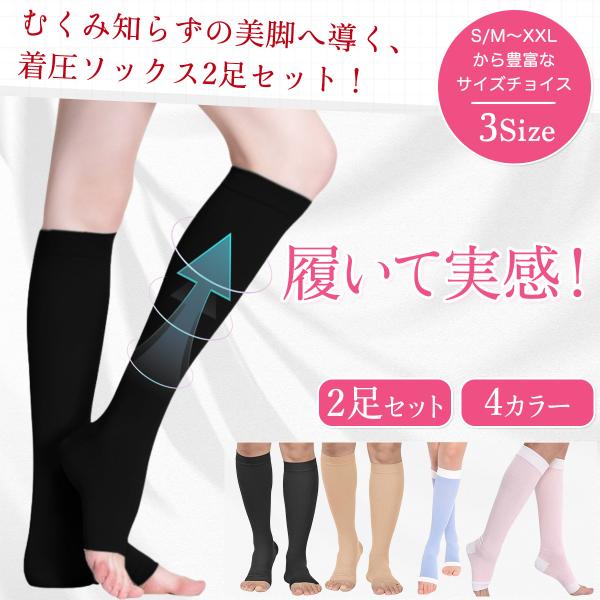 着圧ソックス 2足セット レディース むくみとり 寝るとき オープントゥ 靴下 日中 むくみ ふくらはぎサポーター
