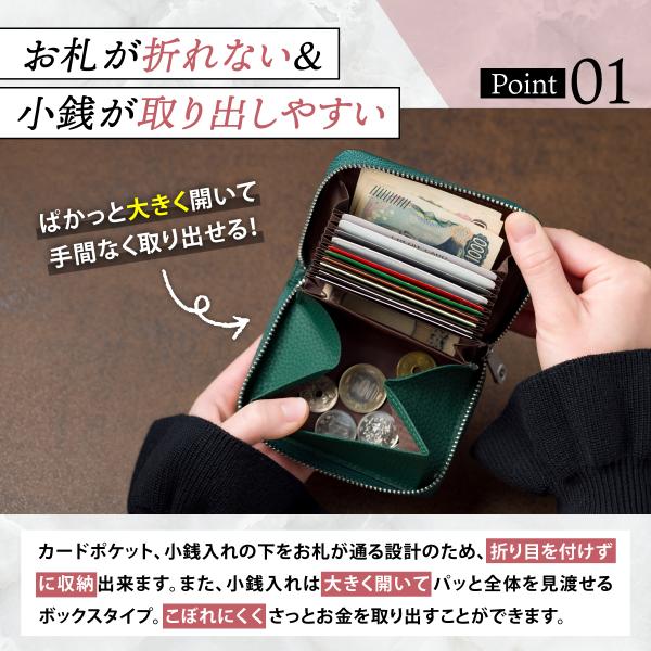 本革 ミニ財部 スキミング防止 お札が折れない カード収納