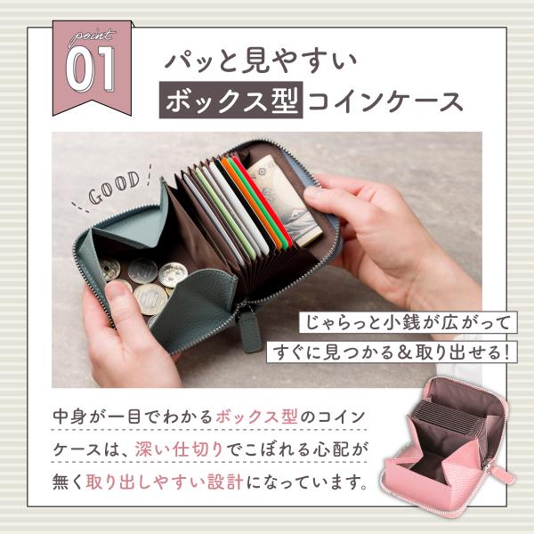 たっぷり収納できるカード入れに加え、小銭やお札も効率よく収納可能。