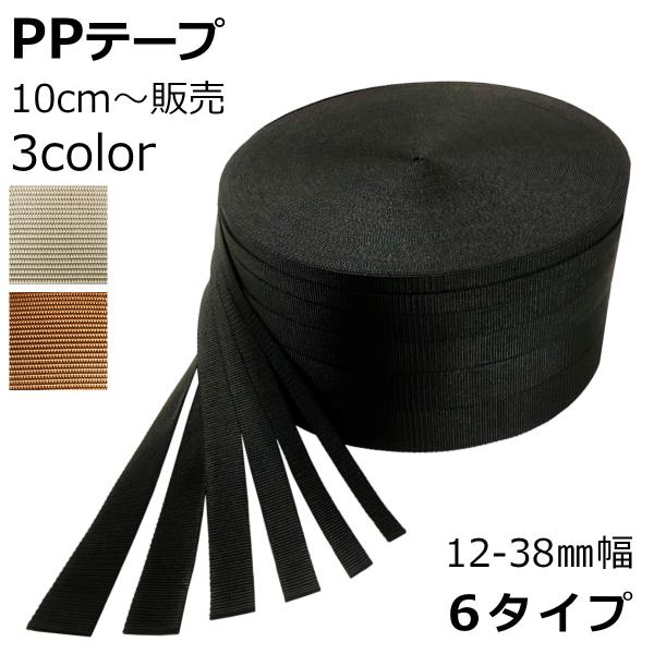 PPテープ 黒 茶 ベージュ 10cm単位 幅 12mm 15mm 20mm 25mm 30mm 38mm