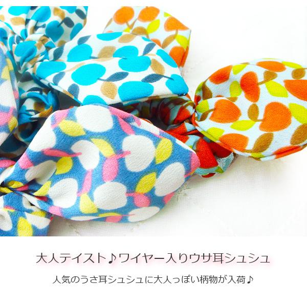 大人柄ウサ耳シュシュ 花柄 リンゴ柄 水玉模様
