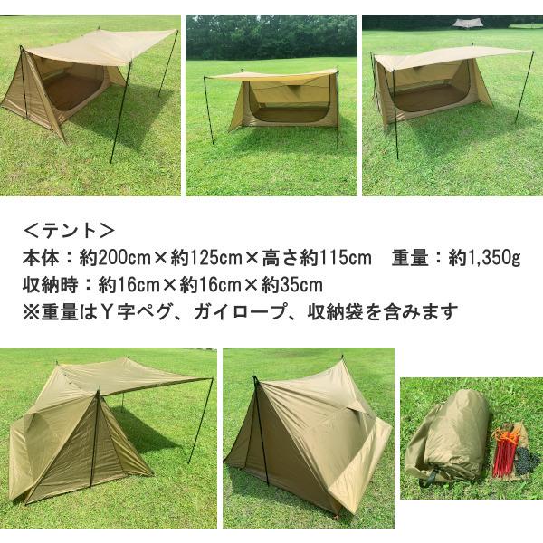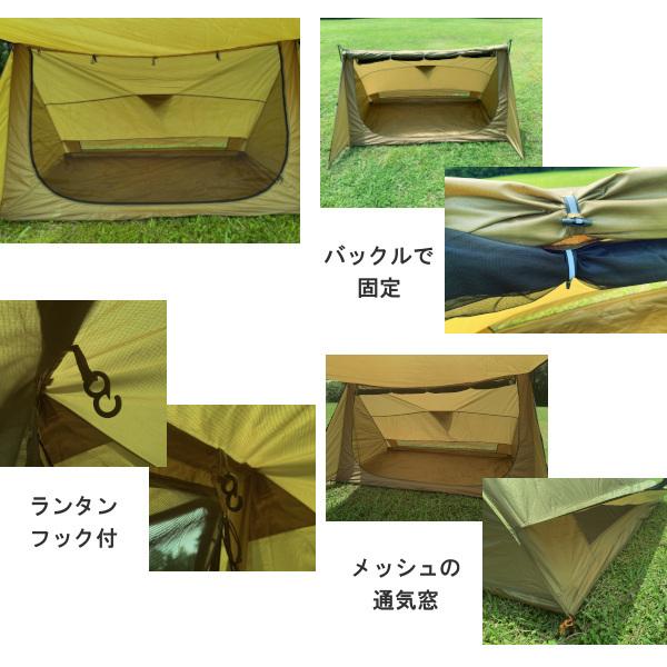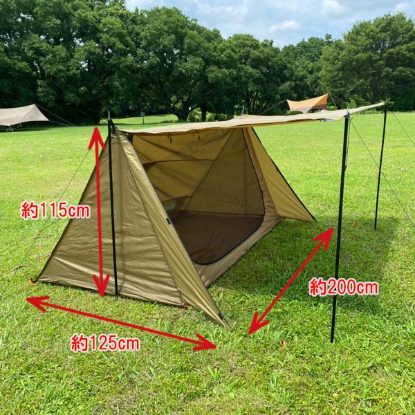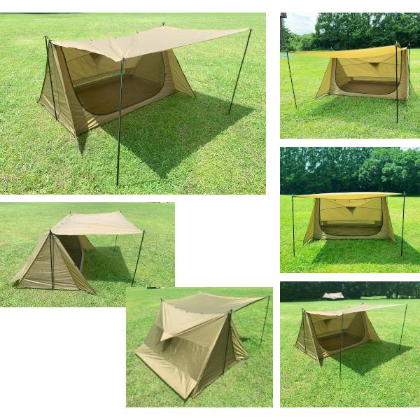 パップテント ブラックポール4本付き 前後メッシュ 軽量 コヨーテ 収納付き 軍幕 ソロテント ソロシェルター ソロキャンプ キャンプ アウトドア