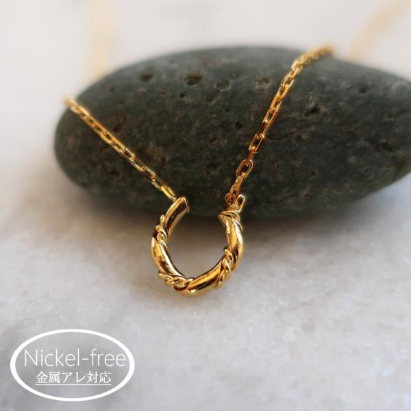 ネックレス 馬蹄 ブランド k18gp 小さ目 ミニ ハワイ 馬蹄型 日本製 ホースシュー u字 u型 上向き レディース ニッケルフリー