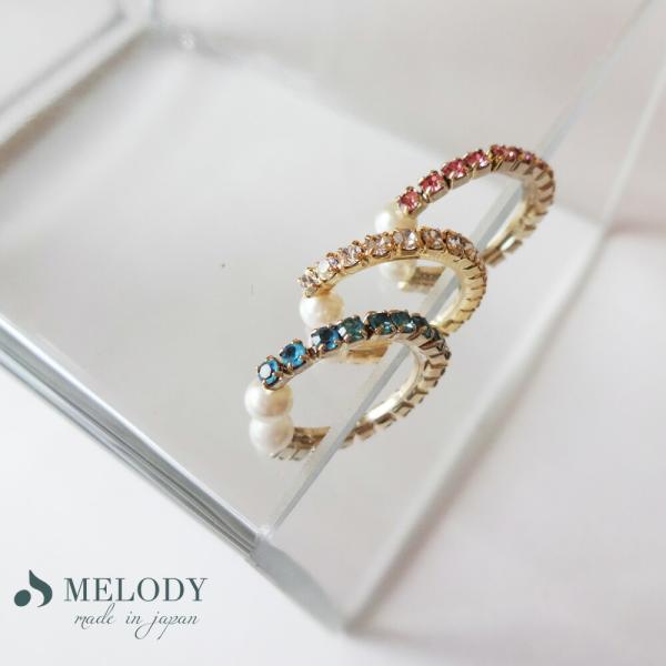 カラフルな3色のラインストーンが耳元のアクセントに。