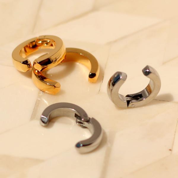 ステンレス イヤリング K18GP クリップ シンプル フープ ゴールド ブラック メンズ イヤカフ プレゼント ワンポイント 爆買 母の日