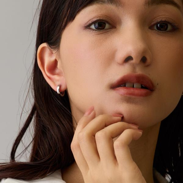 小ぶりで程よい厚みのフープの、シンプルイヤリングです。