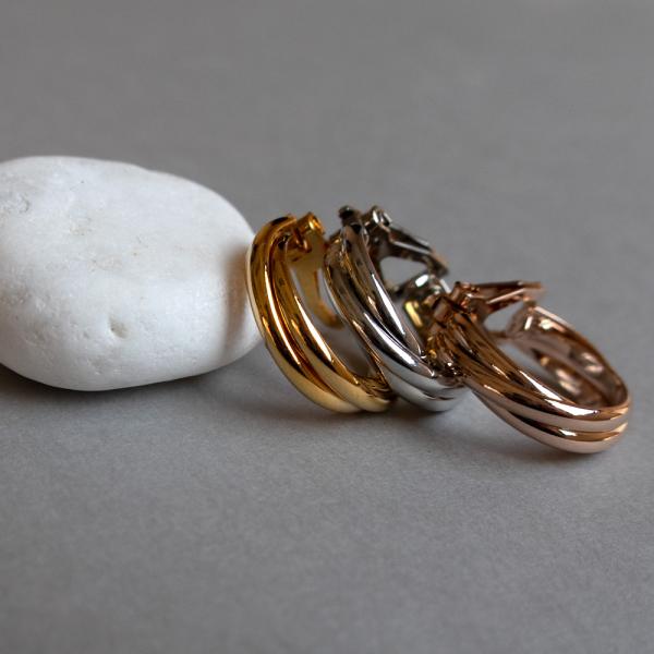 イヤリング K18GP 3連 フープ ピアス キャッチレス 純チタン チタンポスト 金属アレルギー対応 クリップ トリニティ 交差 クロス
