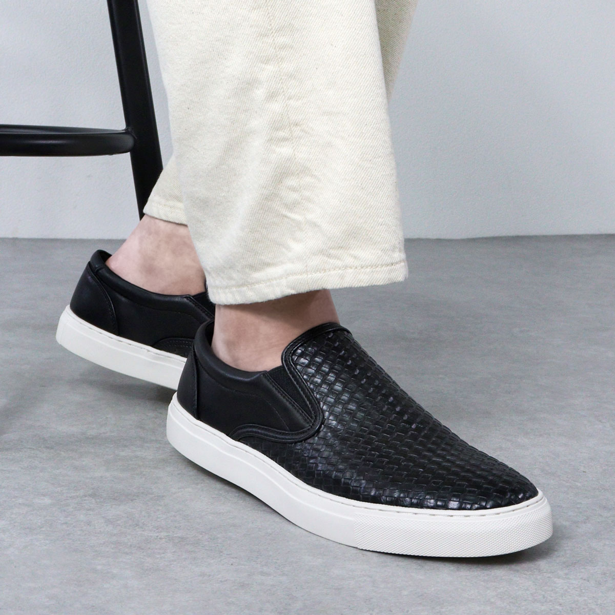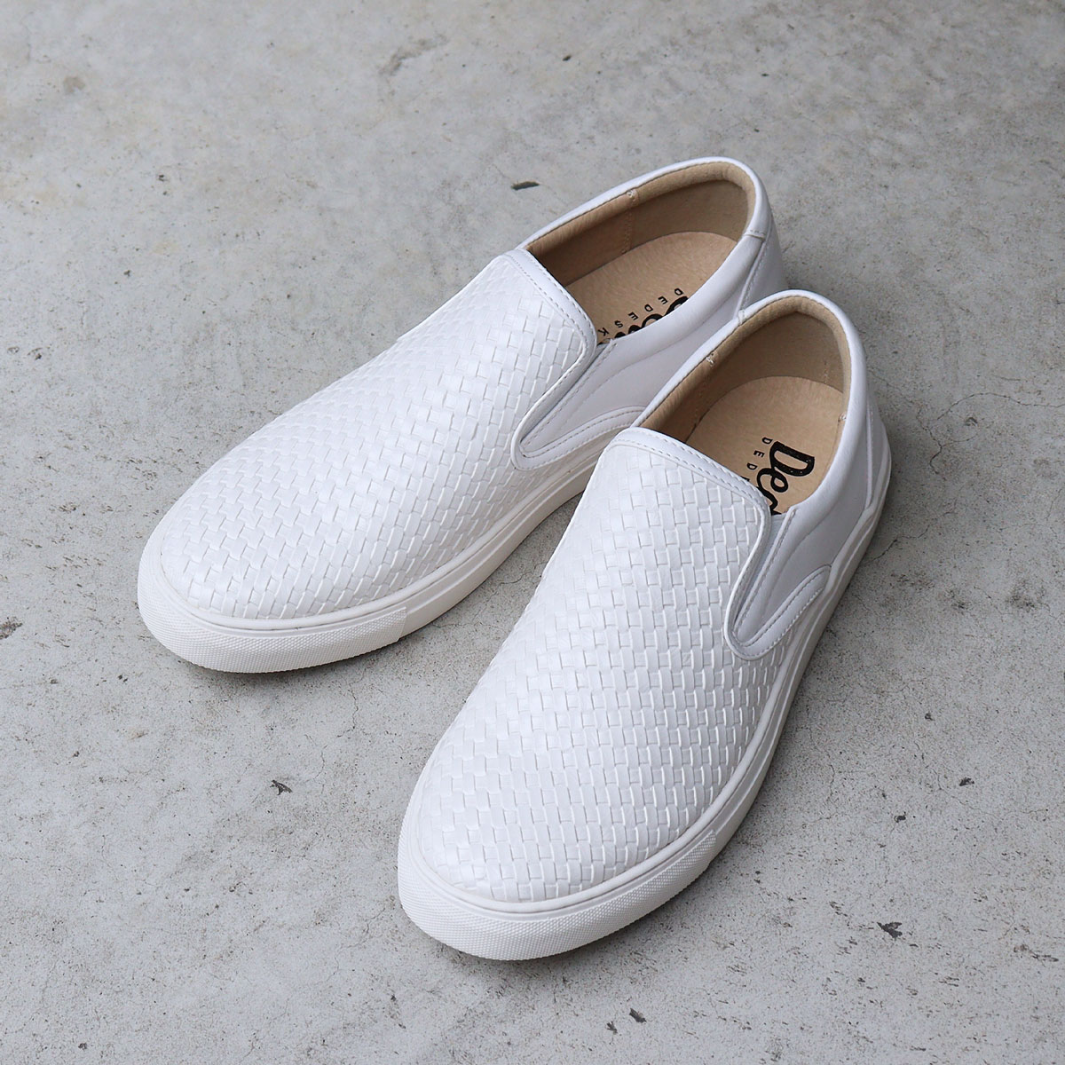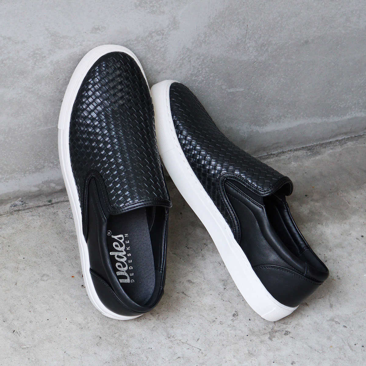 スニーカー スリッポン イントレチャート 編み込み風 型押し 軽量 おしゃれ カジュアル シンプル 歩きやすい 履きやすい 柔らかい 通勤 通学 学生 上品 大人 オフィス 通勤 通学 デイリー 合成皮革 PUレザー 靴 紳士靴 男性 男子 メンズ 黒 ブラック 白 ホワイト 3cmヒール Dedes デデス 25cm 25.5cm 26cm 26.5cm 27cm 20代 30代 40代 50代 60代 春 夏