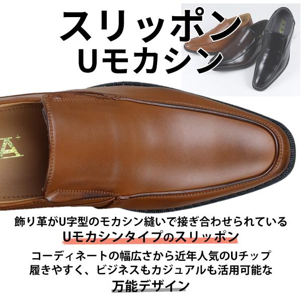 ビジネスシューズ 革靴 スリッポン Uチップモカ シークレットシューズ 身長アップ スタイルアップ 美脚 脚長効果 滑りにくい 防滑ソール 機能性 大きいサイズ ロングノーズ メンズ 紳士靴 靴 シューズ AAA+ サンエープラス PUレザー シンプル 定番 フォーマル 通勤 通学 入学式 卒業式 結婚式 冠婚葬祭 葬式 就活 リクルート スーツ ドレス パーティー タキシード 衣装 衣裳 男装 ホスト 人気 プレゼント ギフト 誕生日 台風 雨 雪 春夏 秋冬 黒 ブラック 茶 ブラウン 24.5cm 25cm 25.5cm 26cm 26.5cm 27cm 27.5cm 28cm 29cm 30cm 20 30 40 50 60 70代 ヴァンプローファー