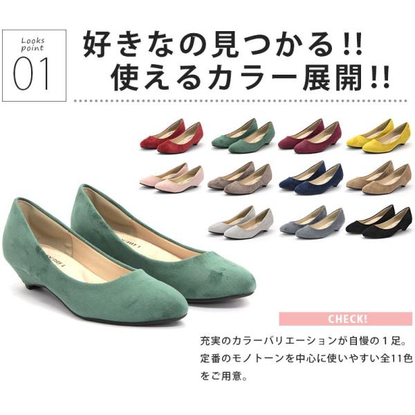 パンプス 歩きやすい ローヒール 3.5cm アーモンドトゥ ウェッジソール 22.5-25cm No.1112 ポイント利用 SALE