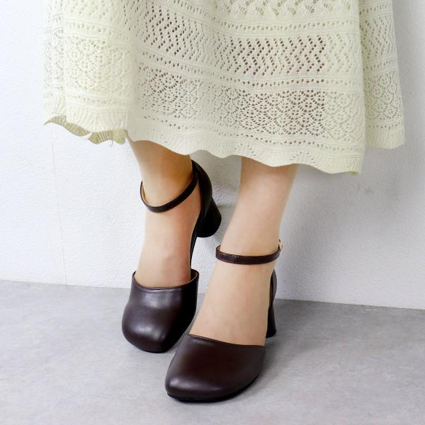 パンプス 痛くない 幅広 オブリークトゥ ミドルヒール 5cm ストラップ 黒 22.5-24.5cm No.1160 セット割引対象1足税込3025円