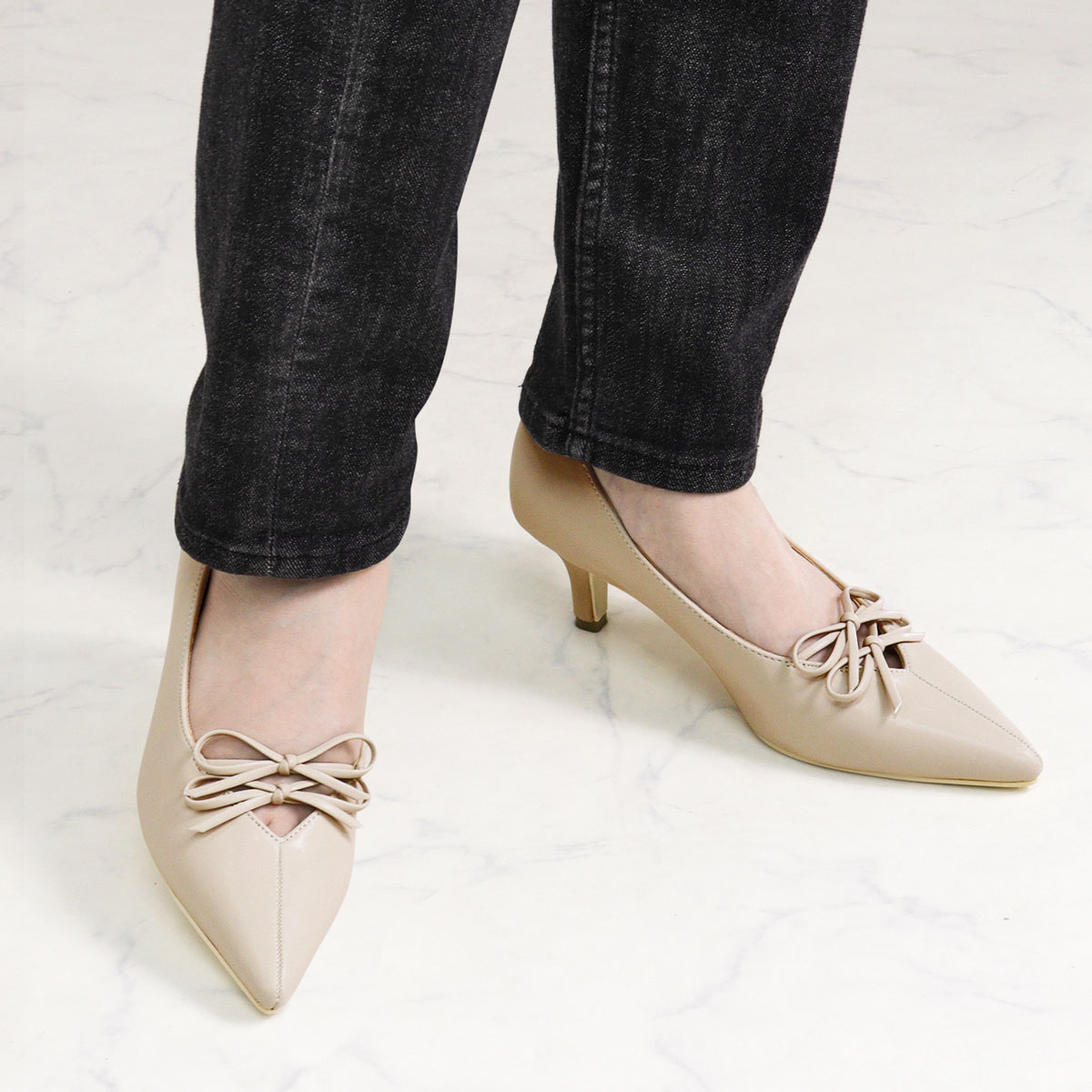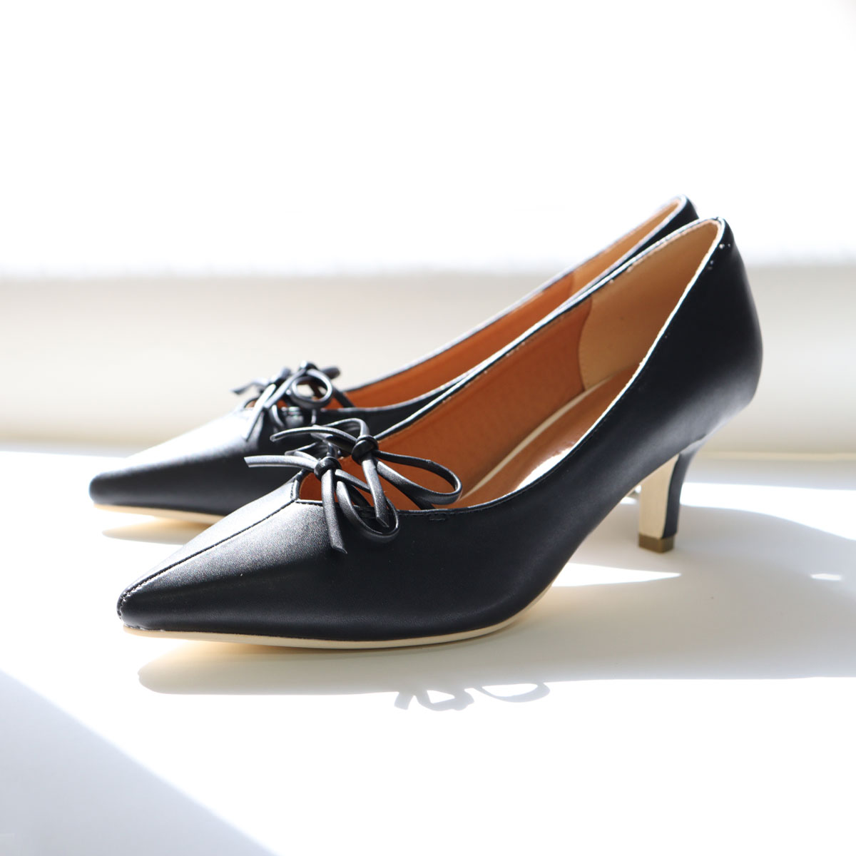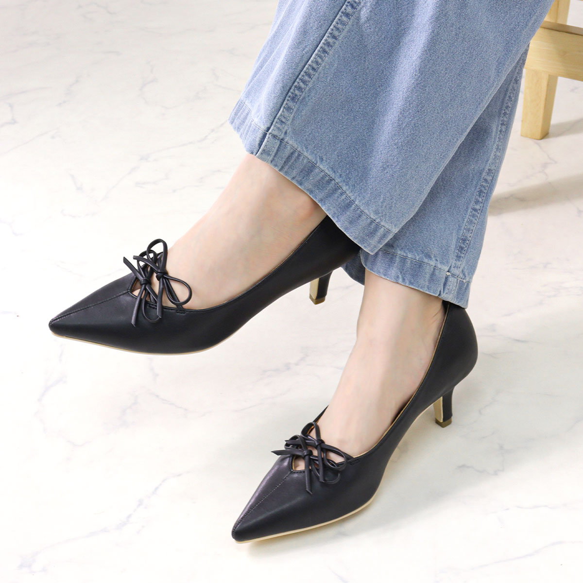 パンプス ポインテッドトゥ リボン 黒 痛くない