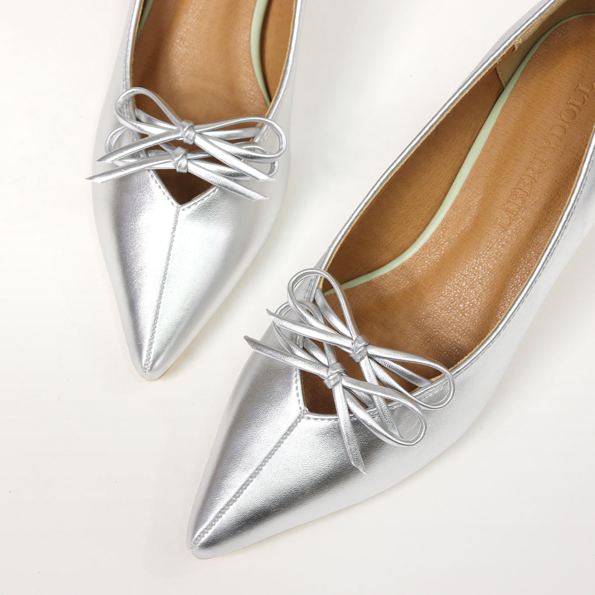パンプス ハイヒール 6cm ポインテッドトゥ リボン シルバー 22-25cm リバティードール No.1194 ポイント利用 セット割引対象1足税込3025円