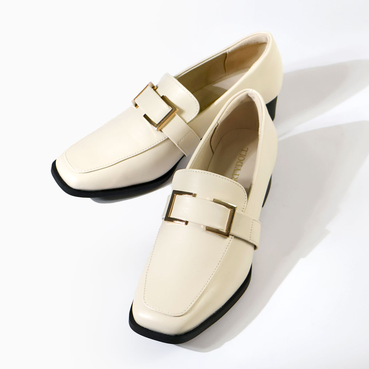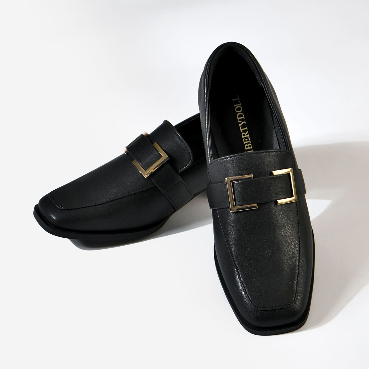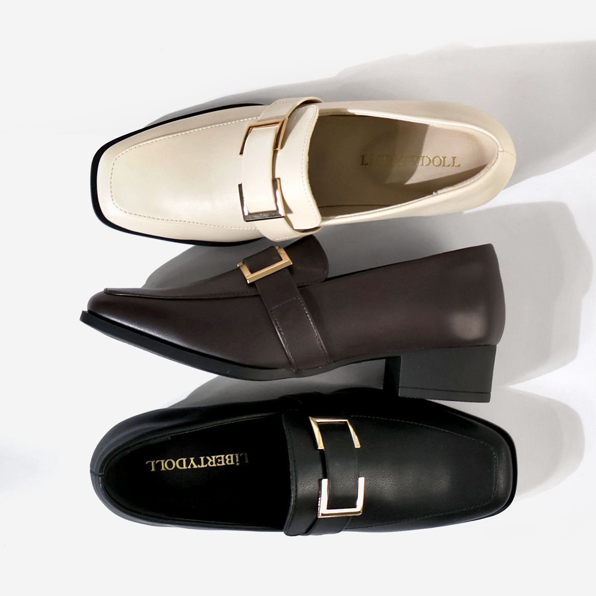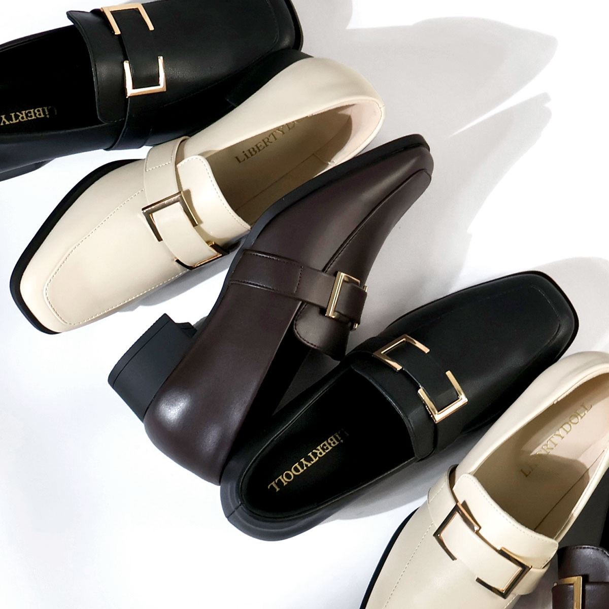ローファー バックルローファー カジュアルシューズ スクエアトゥ バックル 脱げにくい かかとクッション すっきり 甲低め 綺麗 美シルエット スタイルアップ 美脚 シンプル きれいめ カジュアル マニッシュ クラシカル モード 上品 大人 通勤 通学 お出かけ 黒 ブラック 茶 ダークブラウン アイボリー シルバー 婦人靴 靴 女子 レディース レディス 合皮 合成皮革 PUレザー 3cmヒール LiBERTYDOLL リバティードール 23cm 23.5cm 24cm 24.5cm 25cm 10代 20代 30代 40代 50代
