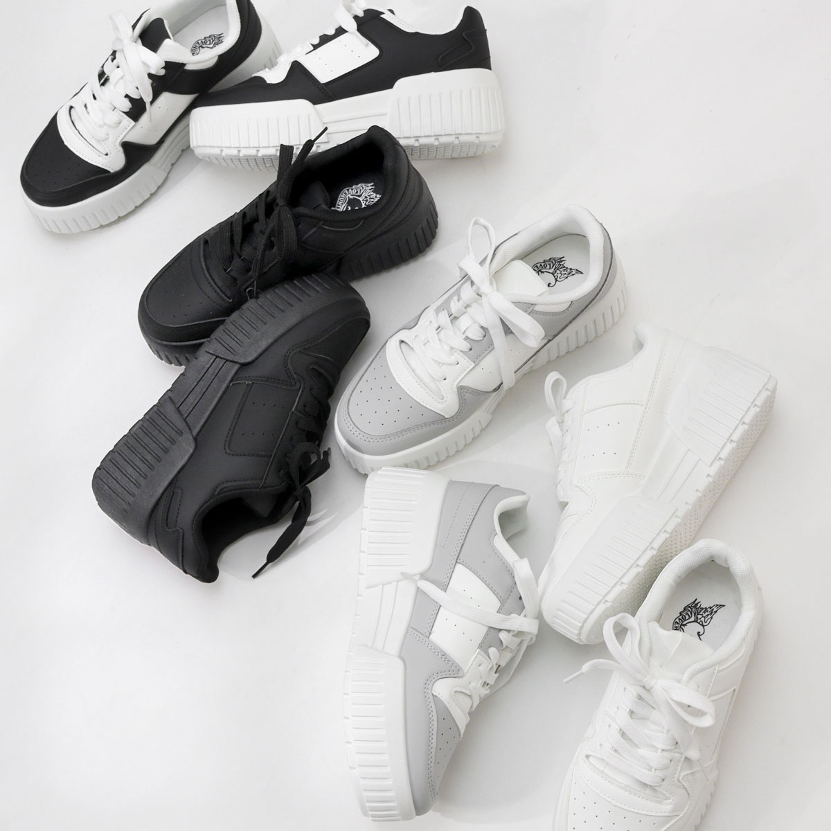 スニーカー ダッドスニーカー ダッドシューズ 紐靴 レースアップ ローカット 厚底 ボリュームソール プラットフォームソール 美脚 足長 スタイルアップ クッション 柔らかい 痛くなりにくい カジュアル スポーティー ストリート 韓国ファッション かわいい かっこいい おしゃれ 通勤 通学 靴 シューズ 女性 レディース レディス 男性 メンズ ユニセックス 男女兼用 黒 ブラック 白 ホワイト グレー コンビカラー 6cmヒール LOVEHUNTER ラブハンター 22.5cm 23cm 23.5cm 24cm 24.5cm 25cm 25.5cm 26cm 26.5cm 27cm 10代 20代 30代