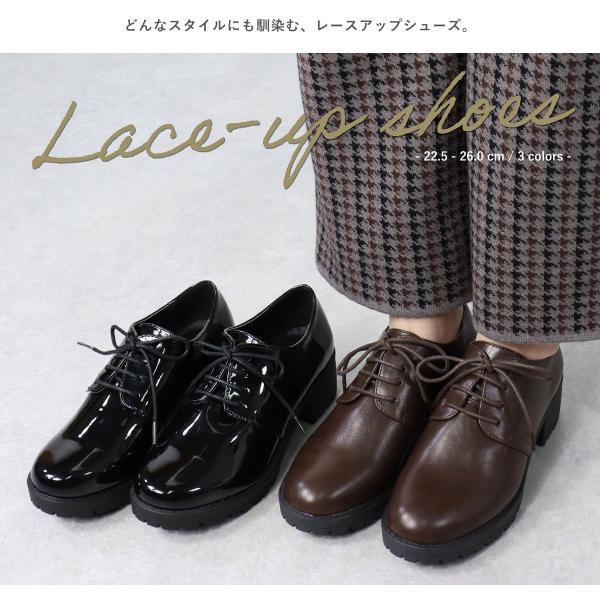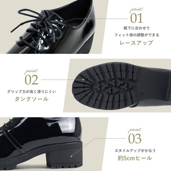 オックスフォードシューズ レースアップ ラウンドトゥ プレーントゥ チャンキーヒール 太ヒール チャンキーヒール 紐靴 革靴 厚底 おでこ靴 おじ靴 おじさん靴 お父さん靴 マニッシュ レディース レディス レトロ シンプル 学生 通勤 靴 シューズ おしゃれ ファッション エナメル 大きいサイズ 小さいサイズ 4.5センチヒール 4cm 5cm 20代 30代 40代 50代 60代 AAA+ Feminine サンエープラスフェミニン 黒 ブラック 22.5cm 23cm 23.5cm 24cm 24.5cm 25cm 25.5cm 26cm
