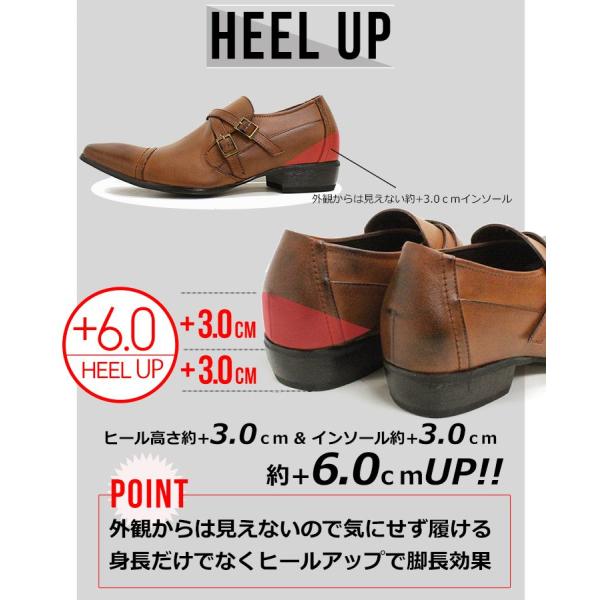 ビジネスシューズ シークレット 6cmヒール メンズ 革靴 黒 ベルト 24.5-27cm No.5892 ラスアンドフリス ラスイチSALE