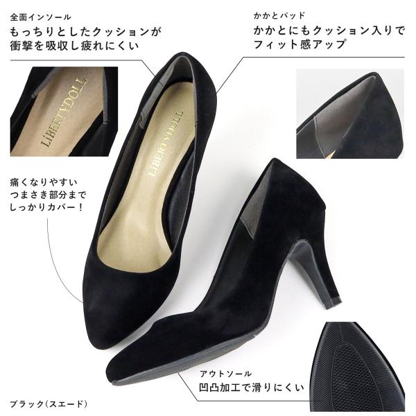 パンプス 歩きやすい ハイヒール 8cm 走れる 黒 ポインテッドトゥ 22-25.5cm No.5314 リバティードール