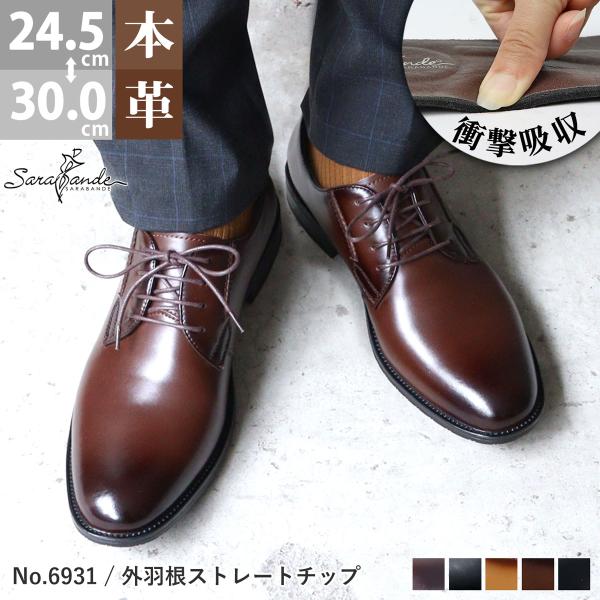 ビジネスシューズ 本革 メンズ 外羽根 プレーントゥ 革靴 黒 24.5-30cm No.6931 サラバンド ポイント利用 一部SALE