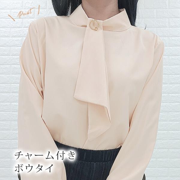 ボウタイ ボリューム袖 シャツ ブラウストップス レディース ワイシャツ カジュアル 無地 大人 女性 ビジネス 通勤 入学式 卒業式 ママ