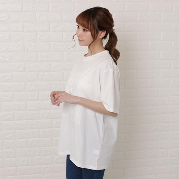 半袖 オーバーサイズ Tシャツ トップス レディース クルーネック ラウンドネック ビッグシルエット ドロップショルダー レタリング ロゴ