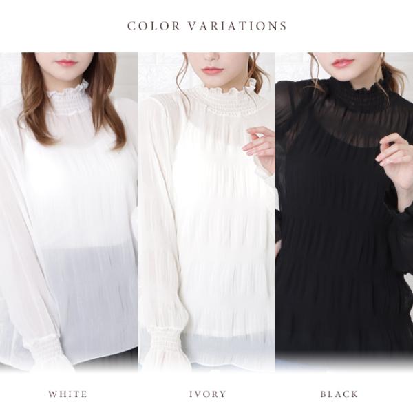 ラグジュアリー フリル 長袖ブラウス シャツフワフワ 長袖 上品 薄手 レディース ハイカラー ハイネック 立ち襟 白 黒