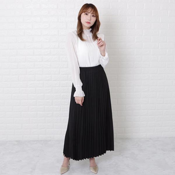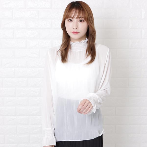 マジョリカプリーツ ハイネック ブラウス トップス レディース フリル 長袖 キャンディースリーブ ドロップショルダー 春 夏 秋 フェミニン
