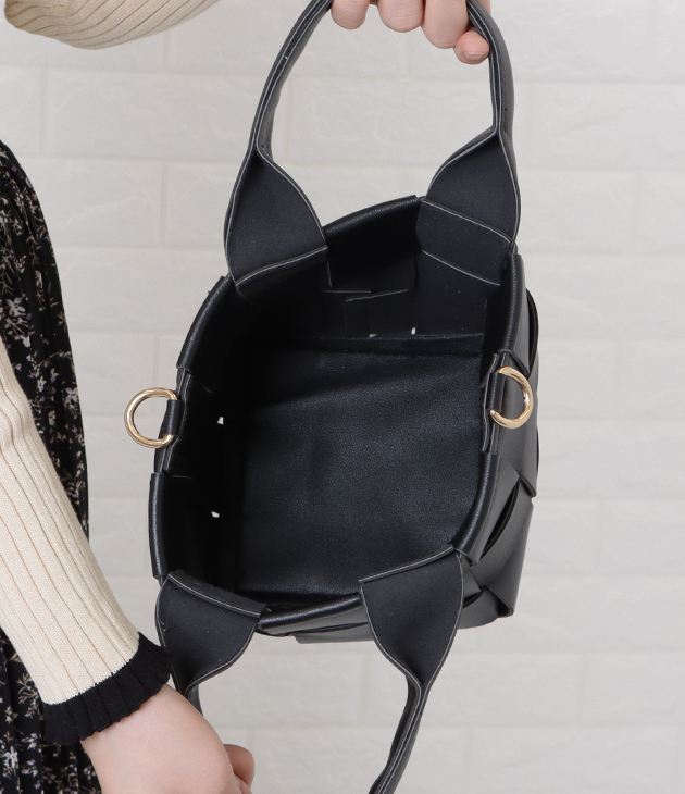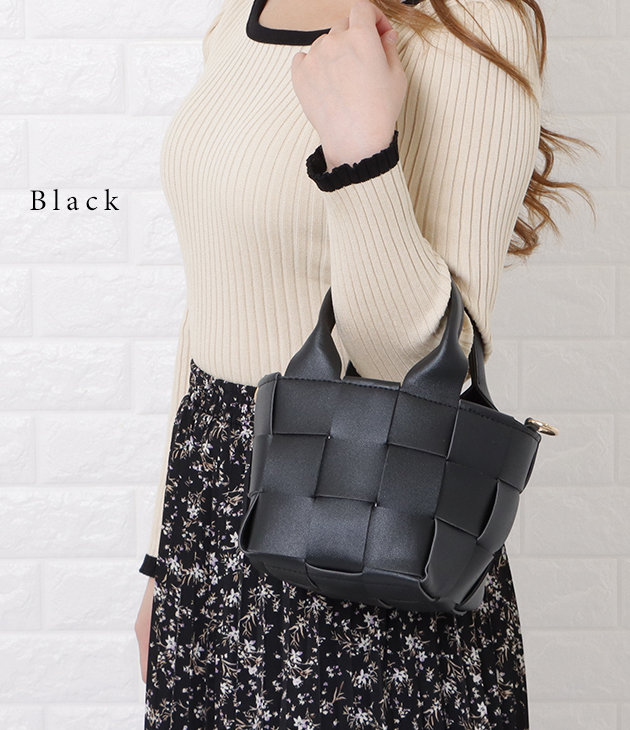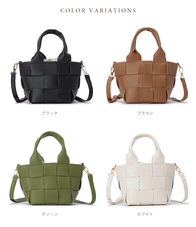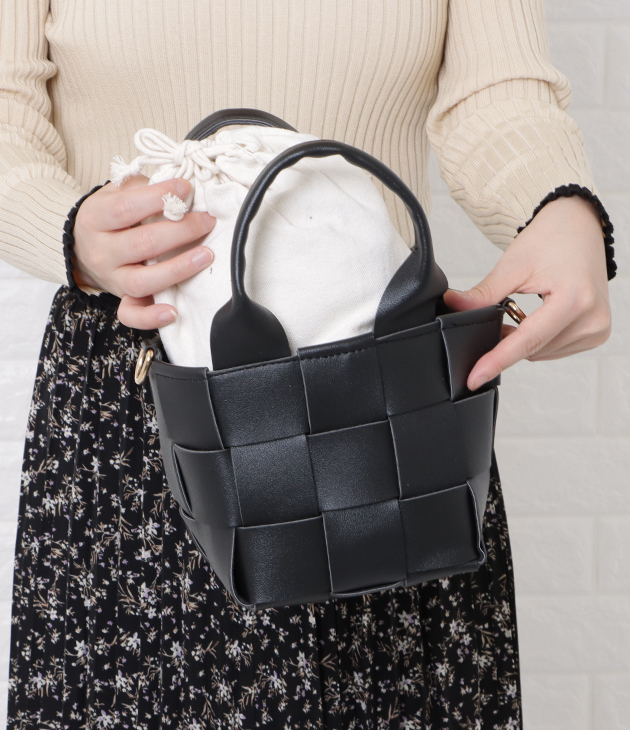2way 編み込み ミニバッグ ハンドバッグ ショルダーバッグ ウーブンバッグ インナーバッグ 巾着 合皮 ソフト PUレザー 高見え レデ