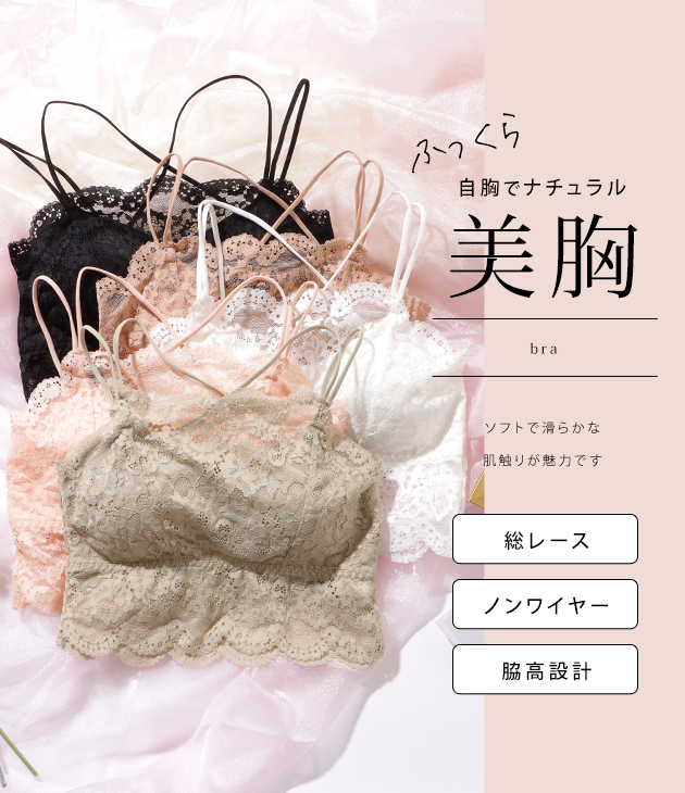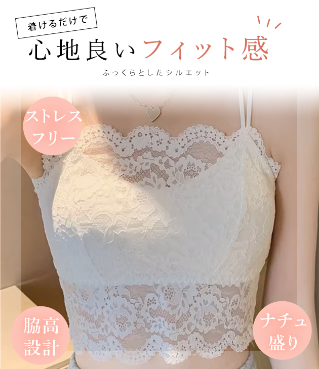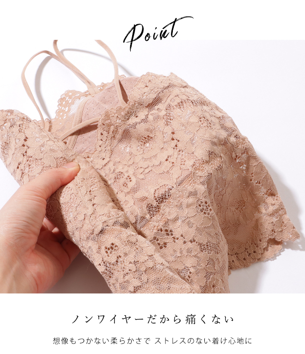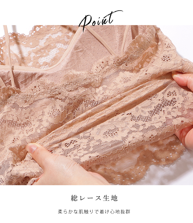 クロス ストラップ スカラップ レース ノンワイヤー ブラ 女性 レディース 下着 肌着 ブラトップ 春 夏 秋 冬 単色 シアー 透け感