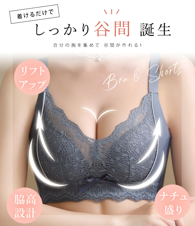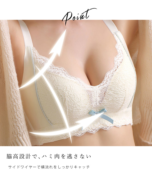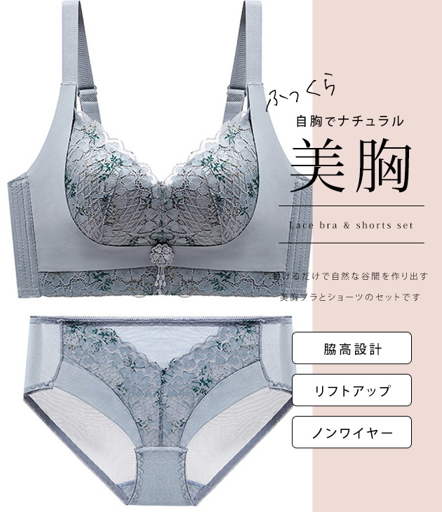 レース切替リボン付きノンワイヤーブラ&ショーツセット 女性 レディース ブラジャー パンツ 下着 肌着 ランジェリー フェミニン 繊細 リラ