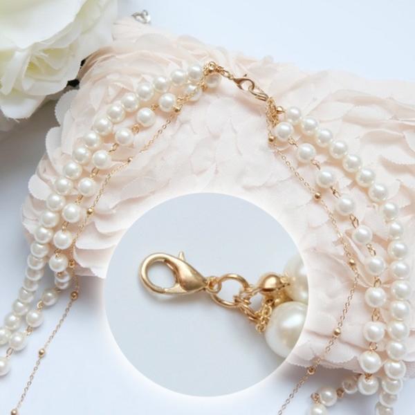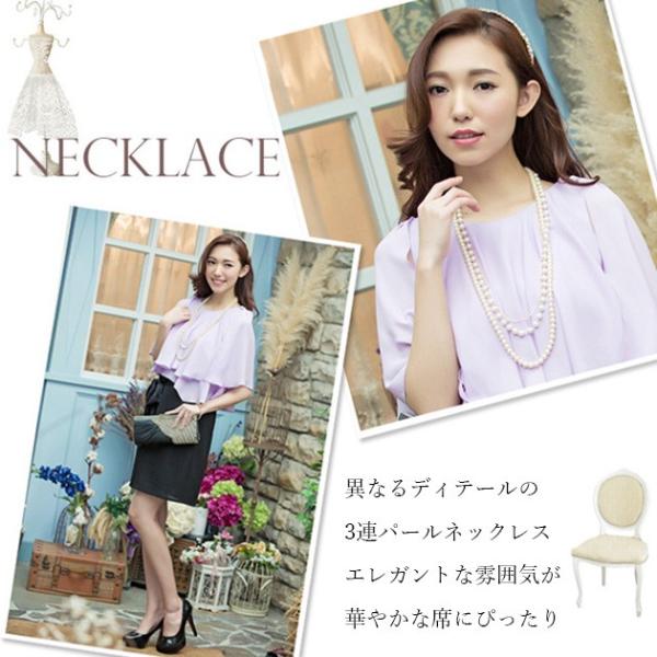 華やかな席にぴったりな三連パールロングネックレス。
