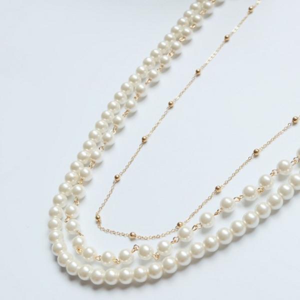 三連パールロングネックレス レディース 春 夏 秋 冬 フェイクパール イミテーションパール 大人 アクセサリー ゴージャス