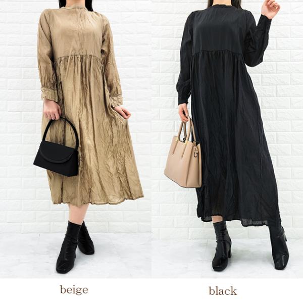 ワッシャーロングスリーブワンピース マキシワンピース 長袖 フレア ロング マキシ丈 ロング丈 ミモレ丈 無地 シンプル レディース
