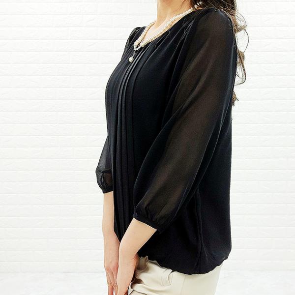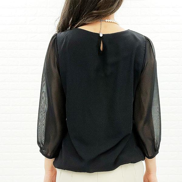 シフォン レース ブラウス 七分袖 レディース オフィス カジュアル 春 夏 シースルー袖 長袖 お呼ばれ 通勤 OL きれいめ ホワイト 白